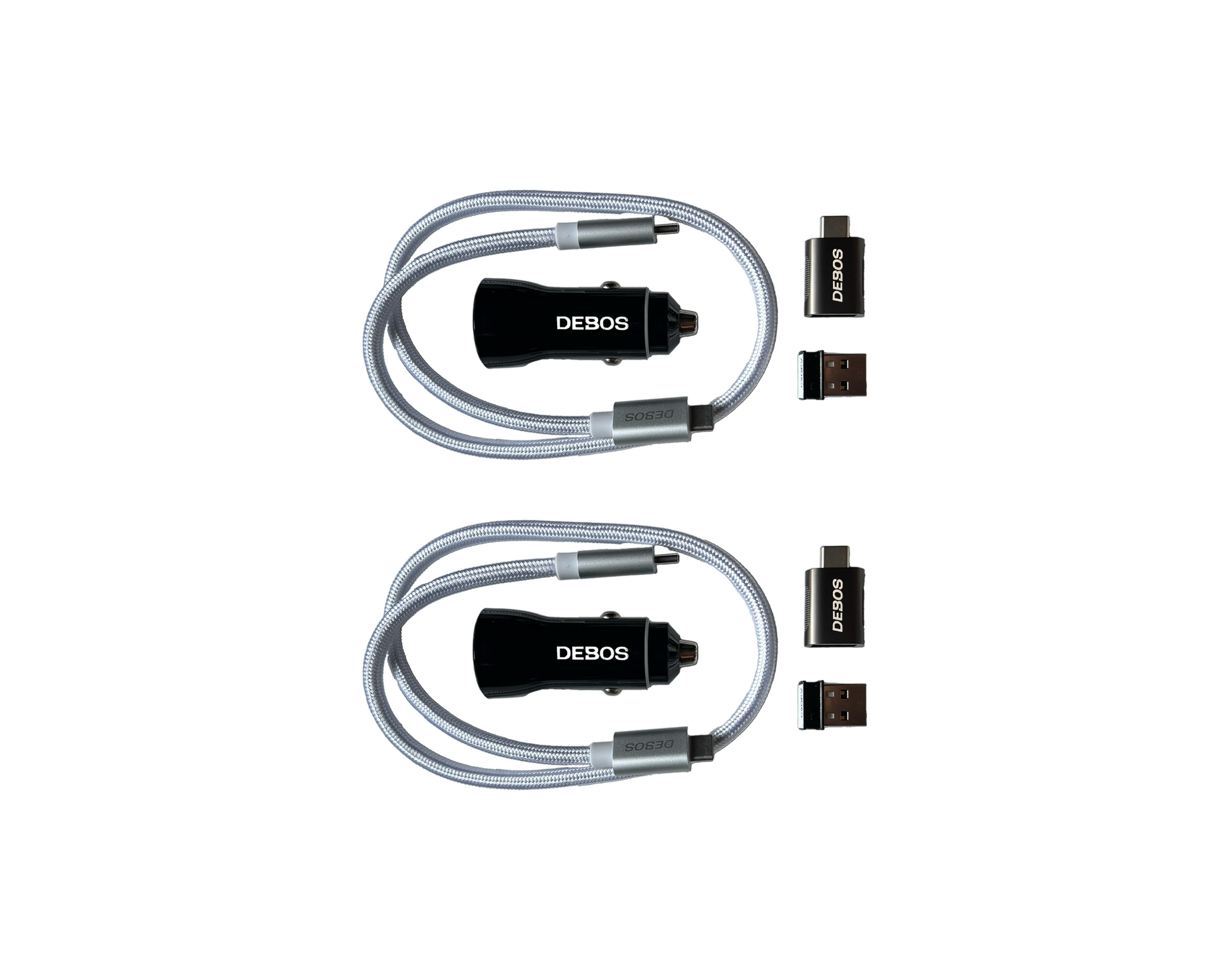 Cada manos libres viene acompañador de un adaptador de mechero para el coche, un cable de carga y un adaptador tipo C.
